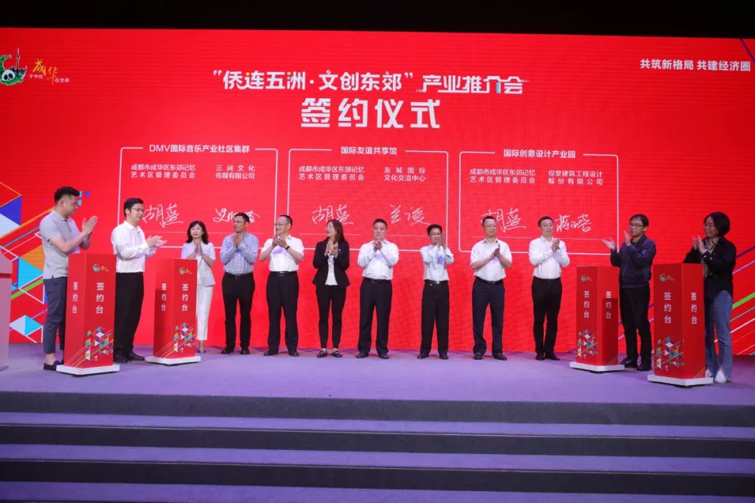 本次推介會(huì)主要針對(duì)成華區(qū)及東郊藝術(shù)區(qū)的區(qū)位優(yōu)勢(shì)、主導(dǎo)產(chǎn)業(yè)、營(yíng)商環(huán)境及人居生態(tài)等方面進(jìn)行推介。會(huì)上,“蓉僑薈”東郊產(chǎn)業(yè)服務(wù)示范點(diǎn)、“僑之家”正式授牌,DMV國(guó)際音樂(lè)產(chǎn)業(yè)社區(qū)集群、國(guó)際友誼共享館、國(guó)際創(chuàng)意設(shè)計(jì)產(chǎn)業(yè)園三個(gè)重點(diǎn)文創(chuàng)項(xiàng)目簽約落戶成華。四川觀堂建筑工程設(shè)計(jì)股份有限公司作為創(chuàng)意設(shè)計(jì)產(chǎn)業(yè)園項(xiàng)目代表,參與了現(xiàn)場(chǎng)簽約儀式。